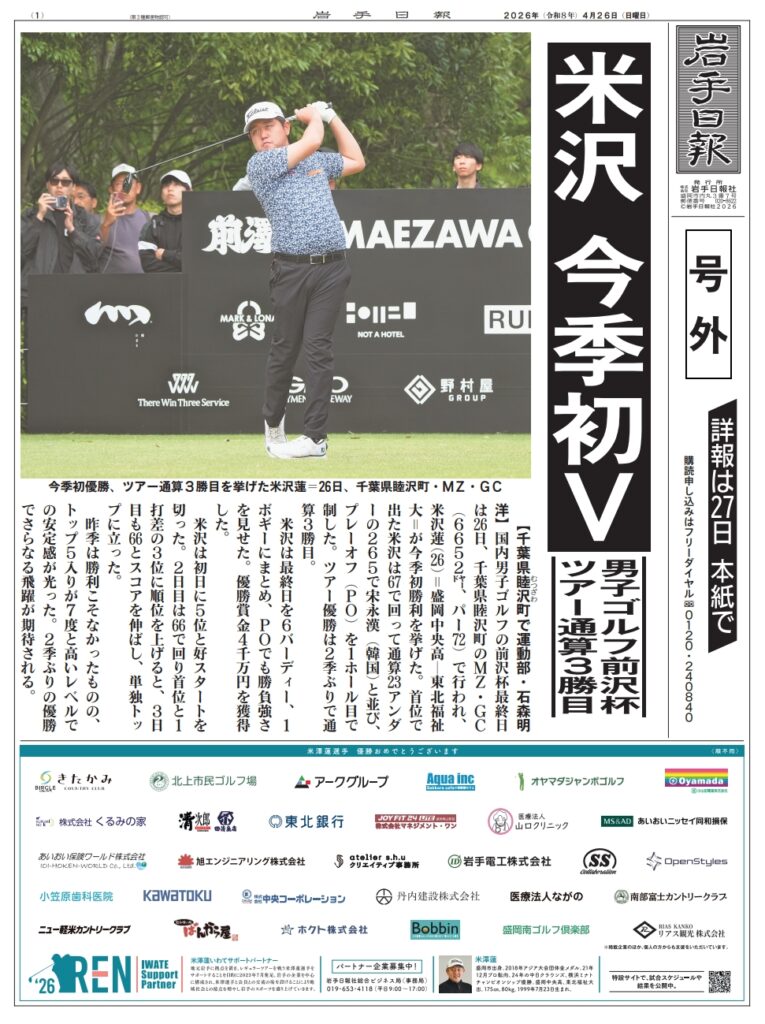 当社は「米澤蓮いわてサポートパートナー」として、米澤選手を応援しています。